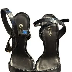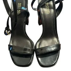 Michael Kors Black Patent Leather Strappy Block Heel Sandals,Ankle Strap closure,NWOB