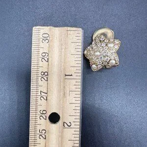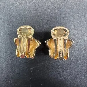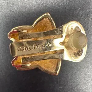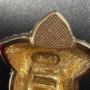 Vintage Christian Dior Star Clip On Earrings Gold Tone Faux Pearl Crystal