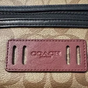 Coach Tan Signature Canvas Cosmetic Pouch with Red Trim
