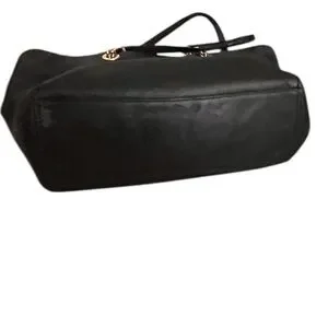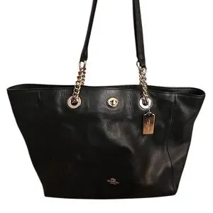 Coach 57107 Black Leather Turnlock Silver Chain Strap Tote Bag