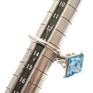 This is an authentic Dior Dior Ring Metal 13 Blue. The ring features a striking square-cut blue gemstone set in a sleek silver-toned metal band.