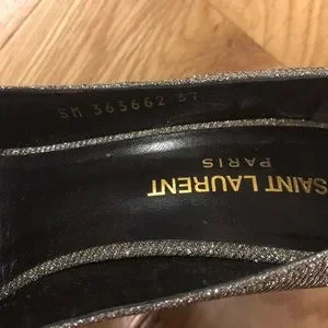Saint Laurent Glitter Pointed-Toe Silver Pumps