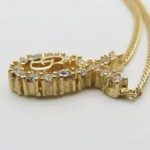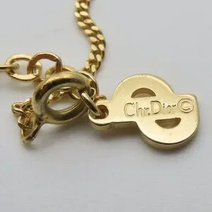 Product Name: Christian Dior Necklace CD Logo Metal Rhinestone Gold Plated GP Accessories Ladies Women Christian Dior