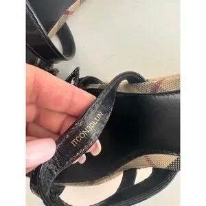 Keywords: Burberry, Designer, Luxury, Check Print, Espadrille, Patent Leather, Jute Wedge, Classic, Coastal, Resort, Summer, Vacation, Elegant, Chic, Minimalist, Y2K, Old Money, Preppy, British Heritage, Sophisticated, Workwear, Occasion, Event, Wedding Guest, Coastal Cowgirl, Nautical, Timeless, Burberry espadrilles, Haymarket print, Patent leather, Wedge heels, Designer sandals, Italian made, Summer fashion, Bow detail, Open toe, Luxury footwear, Casual chic, Platform sandals