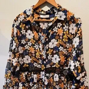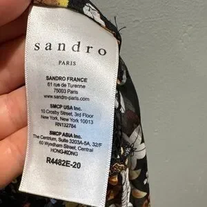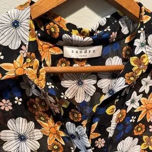 Sandro Paris Reyes Floral Button-Front Sheer Smock Dress in Black & Mustard