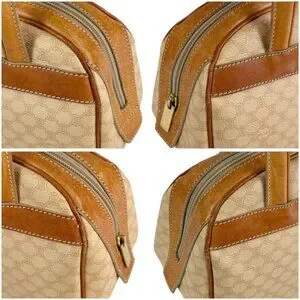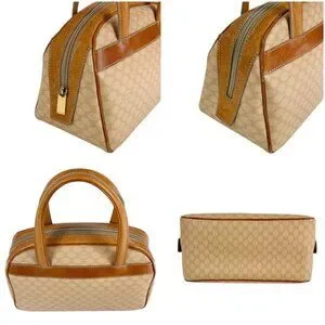 Celine Mini Boston Bag Top Handle Bag Macadam Pattern Beige Vintage
