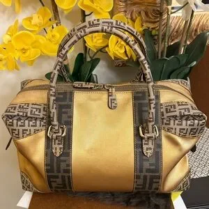 FENDI Zucca Vintage Canvas and Leather Luxury Boston Bag