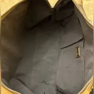 VINTAGE FENDI ZUCCA Canvas and Leather Boston Bag in EUC. Measurements are 10 X 15, has a top zipper closure with logo on zipper pull and handles, accompanied by FENDI Dust Bag, and Authenticity Card, Serial Number intact. This beautiful bag is NOT new and may show signs of vintage wear to the canvas. However, nothing major. Please Examine Photos, ask questions. No Cancellation. All Sales Final.