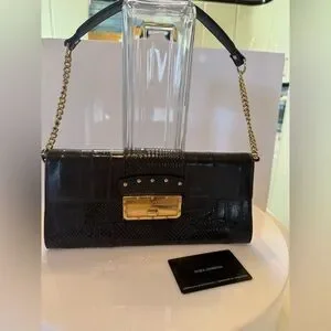 Dolce & Gabbana Black Leather Clutch with Gold Chain and Hardware vintage