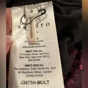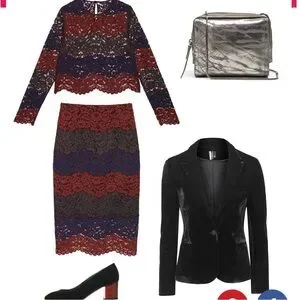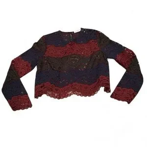 Sandro Red Blue Lace 2 Piece Long Sleeve Lined Pencil MIDI Skirt Set Size 3 US 8