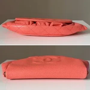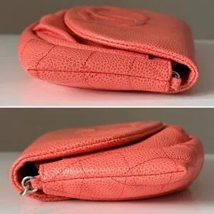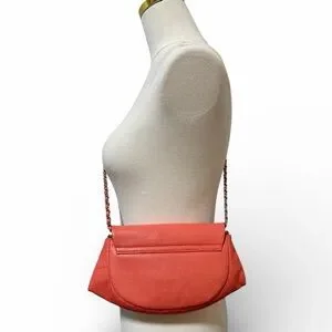 🍑Chanel Half Moon Wallet on Chain Crossbody Orange Leather Silver Hardware