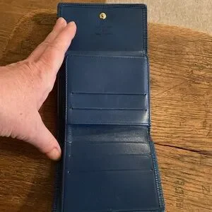 Gorgeous Blue Epi Leather Double Sided Bifold Wallet - This is a hallmark of Louis Vuitton and much more durable than the coated canvas.