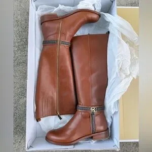 Michael Kors Mindy Leather and Signature Logo Trim Boot over the Knee