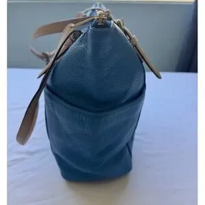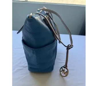 This beautiful rare blue Michael Kors Jet Set tote is in like new condition. There is a tiny bit of wear on the metal feet at bottom of bag from sitting on closet shelf. The bag itself has never been used