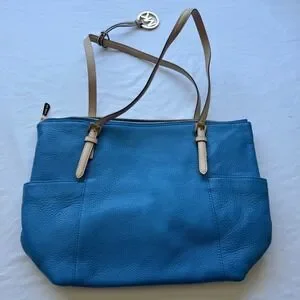 Michael Kors Handbag Jet Set East West Top Zip Leather Tote Purse Blue