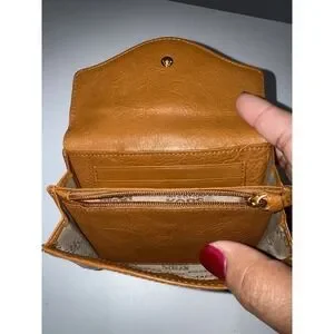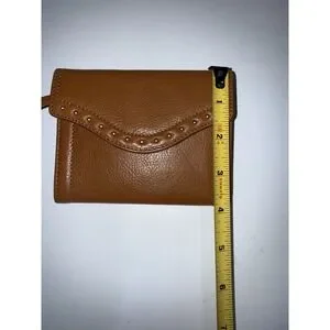 Michael Kors Astor Tan Leather Studded Wallet Button Snap Envelope T