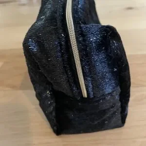 Christian Dior Black Shimmer Cosmetic Pouch CD Logo Star Zipper New