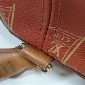 Elegant Louis Vuitton bucket bag in brown. Features signature monogram and drawstring top.