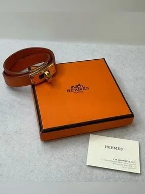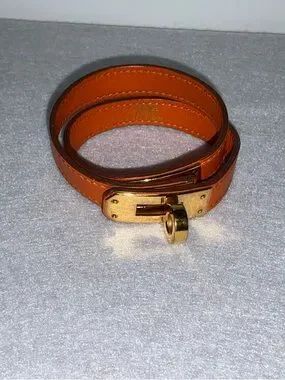 Hermes Kelly Double Tour Leather Bracelet Orange Gold Leather Bracelet