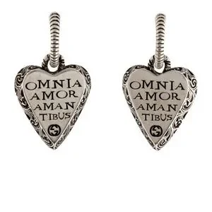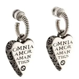 Gucci Sterling Silver Omnia Amor Aman Tibus Drop Heart Earrings