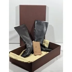 Louis Vuitton Boots Womens 7.5 Black Leather Calf High Rear Zip AR0072