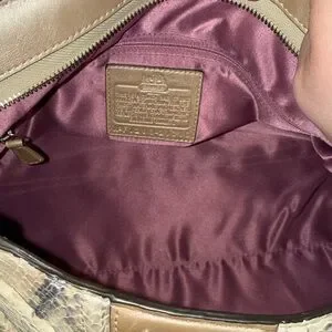 Coach satchel in a neutral snake-print leather. Top handles and silver-tone hardware. Structured silhouette with a polished look. Versatile neutral palette for many outfits. Exterior is slightly dry from being vintage! Never been worn or used