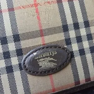 Identification: Features an oval leather patch with the "Burberrys" name and Equestrian Knight logo