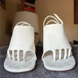 White leather glove 5 five fingers style open toe mules. Flare heel. Wrap around buckle closure. Phoebe Philo era. Comes with box and dust bags. Made in Italy