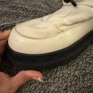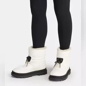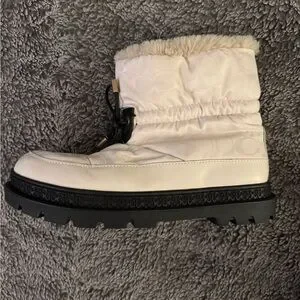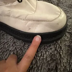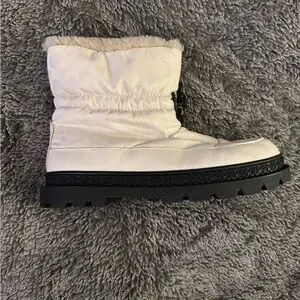 Elegant white boots with sturdy black soles. Cozy and stylish for winter.