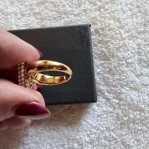 Elegant Louis Vuitton Essential V Pearl Ring. Lightweight and feminine. Perfect for everyday wear or layering with other rings. Cream pearl detail adds classic charm. Preloved. Excellent condition. Size 6.
