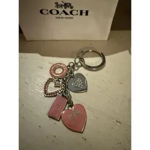 This vintage COACH Pink Pave Hearts Stars Swarovski Crystal Multi Charm Keychain Fob is a stylish accessory for women. The keychain features a charming design with pink hearts and stars made of crystal, giving it a feminine and elegant look. Perfect for adding a touch of charm to your everyday essentials, this keychain is a must-have for any fashion-forward woman.