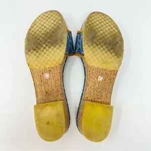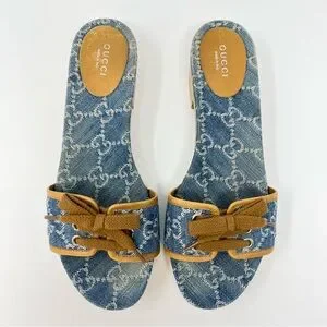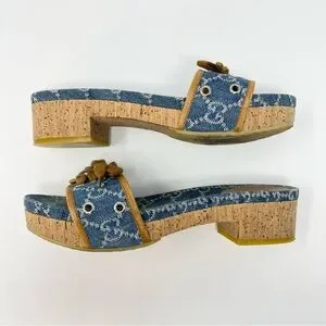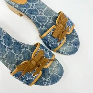 Gucci Vintage 90s Y2K Interlocking GG Logo Sandals Slides Heels Denim Blue 38 8