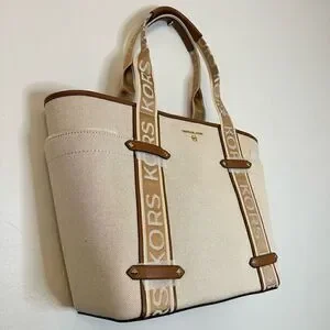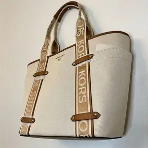 RARE NWT Michael Kors Maeve Large Open Tote Canvas Double Handles Handbag Cream
