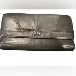 Classic and timeless, this authentic Coach black leather trifold wallet is the perfect everyday essential. Crafted from soft, durable leather, it features a sleek design with the iconic Coach logo on the front.