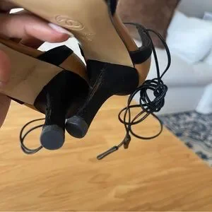 Ahh, finding unique shoes of the past is always a treat. 🙂 These Chanel shoes are striking and have a lace up detail. Every time I wore these, I got so many compliments!! Please see the detailed photos of the heels as it might require some stitching repair.