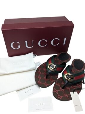 NIB Gucci Kika Interlocking GG Thong Flip Flop Sandal Size EU 39