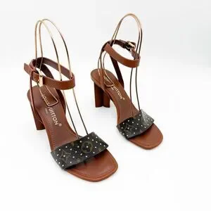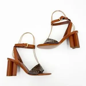 Louis Vuitton NEW LV Monogram Studded Block Heel Leather Sandals EU 38 US 8
