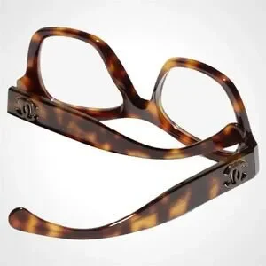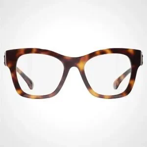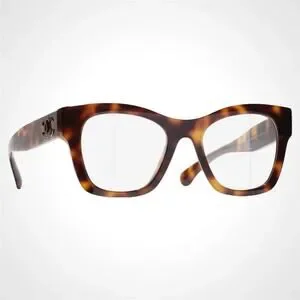 New CHANEL Eyeglasses Havana Gold Butterfly Square Acetate Womens