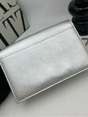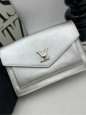 The Louis Vuitton Lockme collection is celebrated for its clean lines and supple leather. This silver iteration offers a sleek, modern edge with a subtle metallic sheen that catches the light beautifully. The delicate chain strap allows for shoulder or crossbody wear—an effortless everyday companion.
