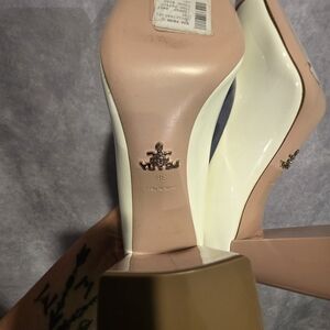 Prada Women's Cream and Blush Cap-Toe Patent Leather Flats