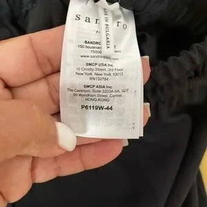 Experience the sophistication of Sandro's black dress pants, crafted with a sleek and elegant straight-cut design. These pants are perfect for formal occasions, offering a refined look with their smooth texture and full-length silhouette. Ideal for those seeking a blend of style and comfort in their wardrobe.