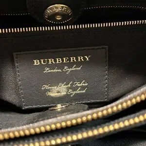Burberry London England Women's Medium Black Leather And House Check Print Banner Bag