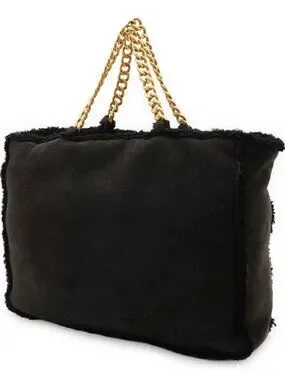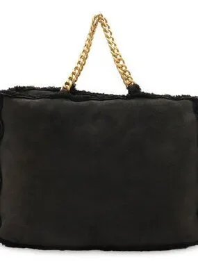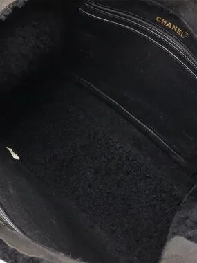 Chanel Mouton Chain Tote Bag Shoulder Leather Black Gold Hardware
