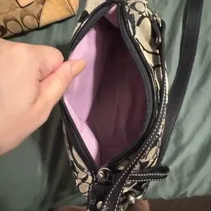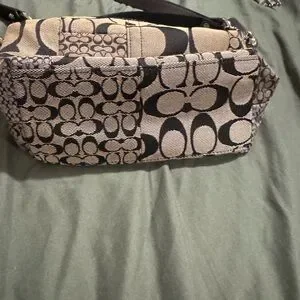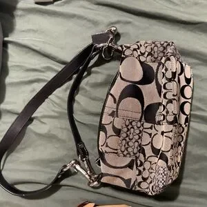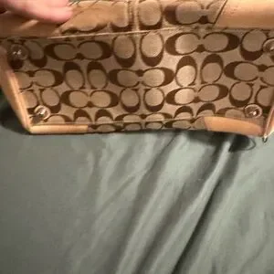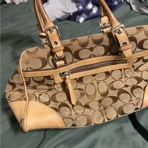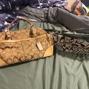 Coach satchel in tan signature canvas with leather trim. Includes coordinating Coach wristlet in black and tan signature print. Classic, wearable duo for everyday use. Tan used more black fairly new inside and out make me an offer I’m reasonable