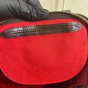 Exterior shows minimal aging, scratches and dents on canvas, dents and scuffs on handles, mild scratches on hardware.