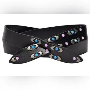 Isabel Marant Black Leather Studded Belt with Blue and Pink Accents