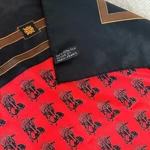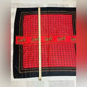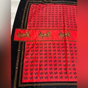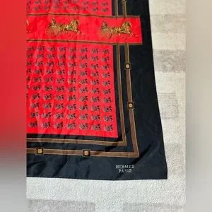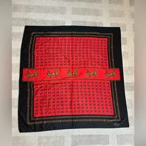 Vintage Hermes Paris Silk Horse and Carriage Silk Scarf Red and Black. Absolutely stunning scarf! 100% silk. Approximately 34.5” X 34.5”. Zero flaws to note. Box is not included, scarf only.
