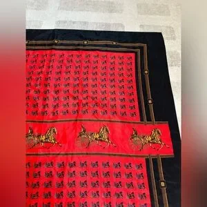 Vintage Hermes Paris Silk Horse and Carriage Scarf Red and Black