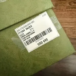 Gucci slide sandals in denim fabric. Embroidered logo across the front strap. Slip-on style with textured sole. Stylish casual look for warm weather.
