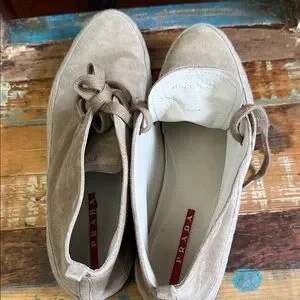 PRADA Men’s Suede Lace-Up Shoes in Taupe Size 8.5